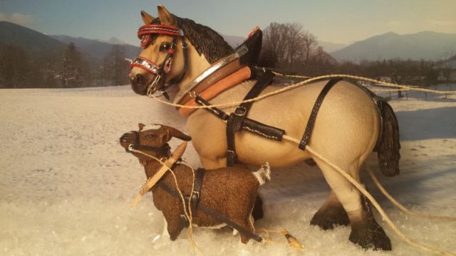 Beschreibung: Ziege und Kaltblut